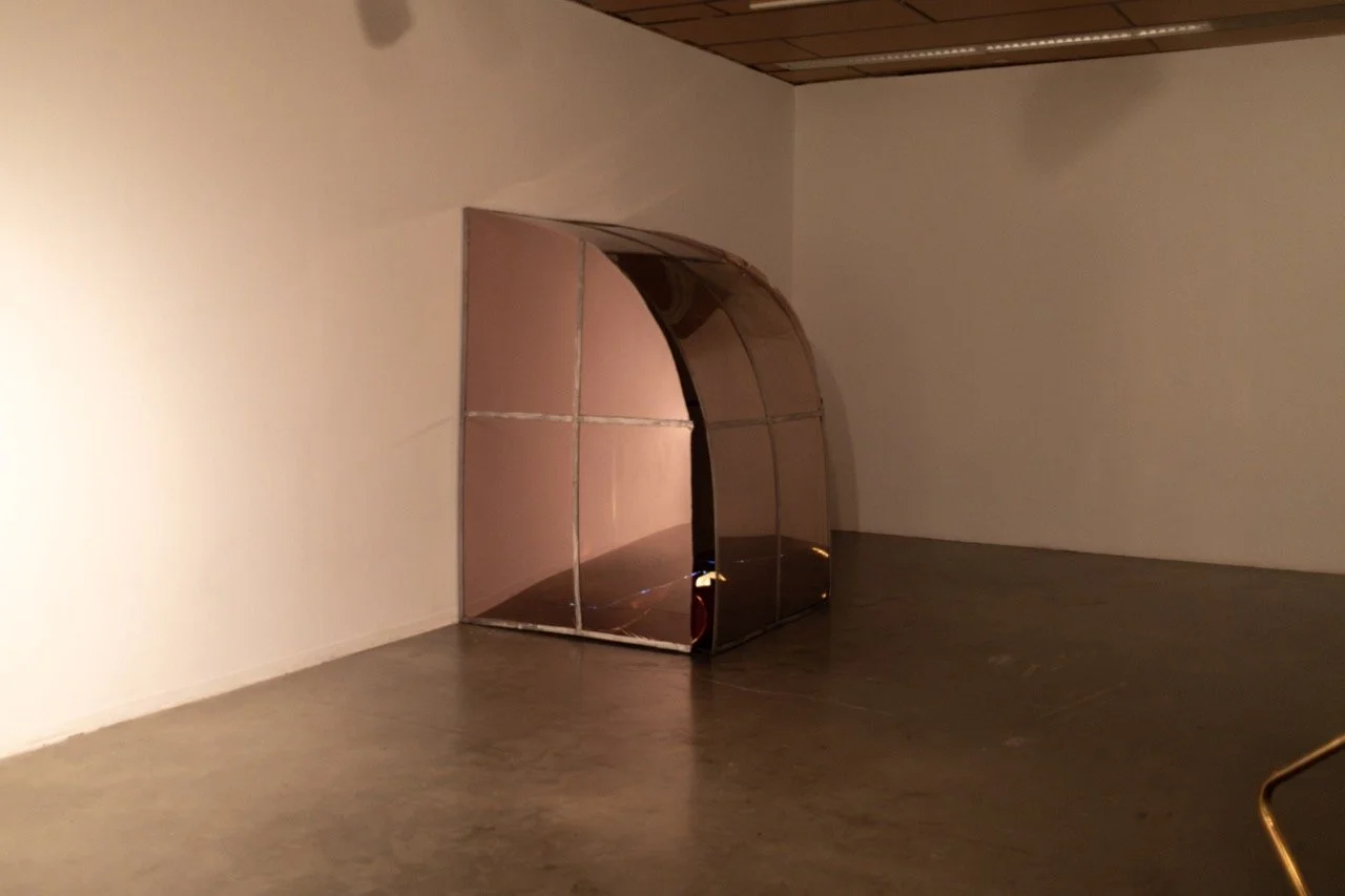 This installation of four human-scaled 35 mm diptychs along an accordion shelf beckons to this lineage of modes and too, to the banal, accessible forms of design oft found in Black interiors. On their own, caverns of ice, cocoa branches, and the shadows of braids on flesh mean little. Though in arrangement- and with the squint of an eye- the represented and the abstracted commingle and conspire a message, if not an instruction, for just how one is meant to get through.